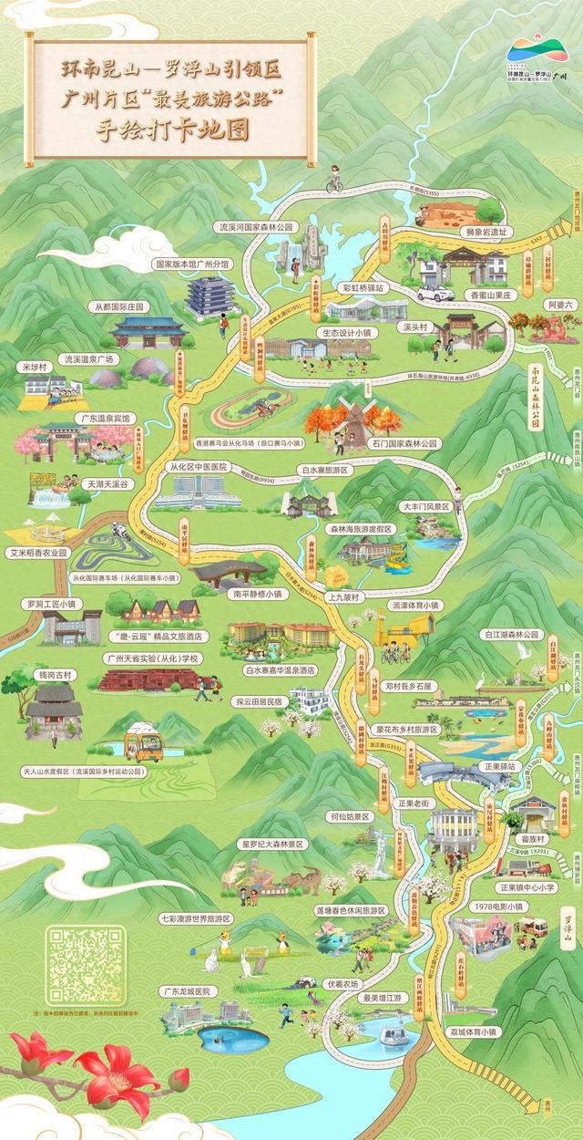 广州片区“最美旅游公路”手绘打卡地图玖联优配